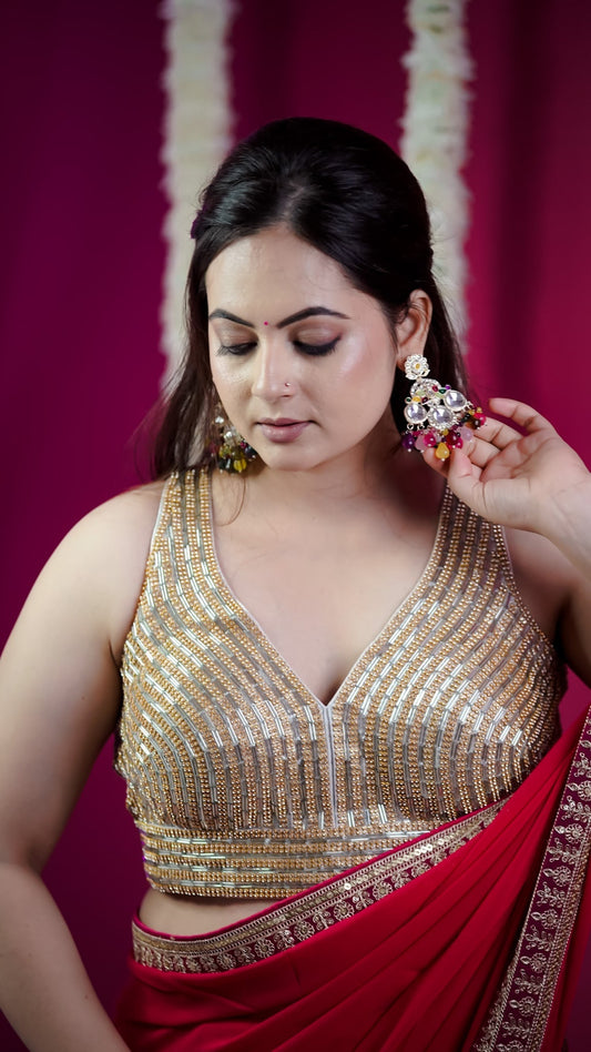 Golden Bead Work Blouse – Perfect for Weddings and Parties