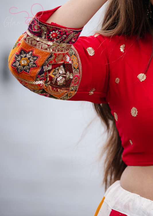 Red Half Sleeve Embroidered Blouse for Women – Festive & Wedding Wear | Glam Devi