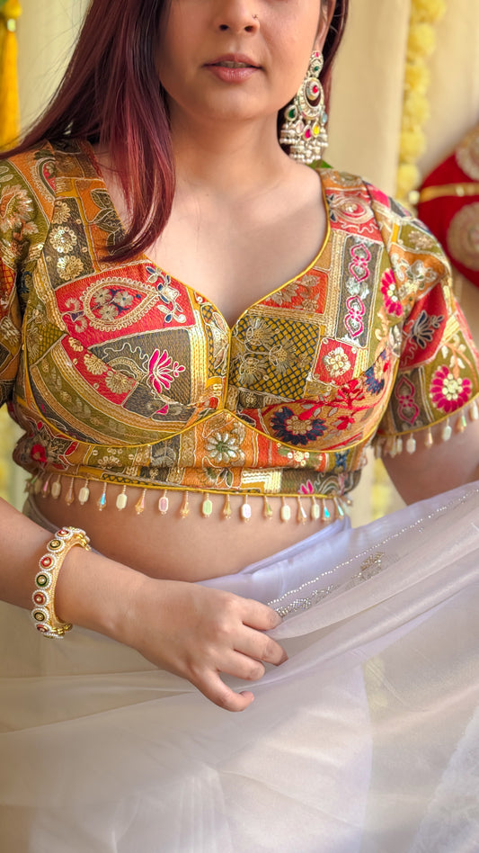Silver Mirror Work Blouse – Perfect for Glimmering Festive Looks