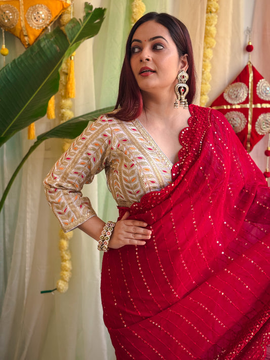 Golden Sequin and Embroidery Blouse – Dazzle with Luxury Design