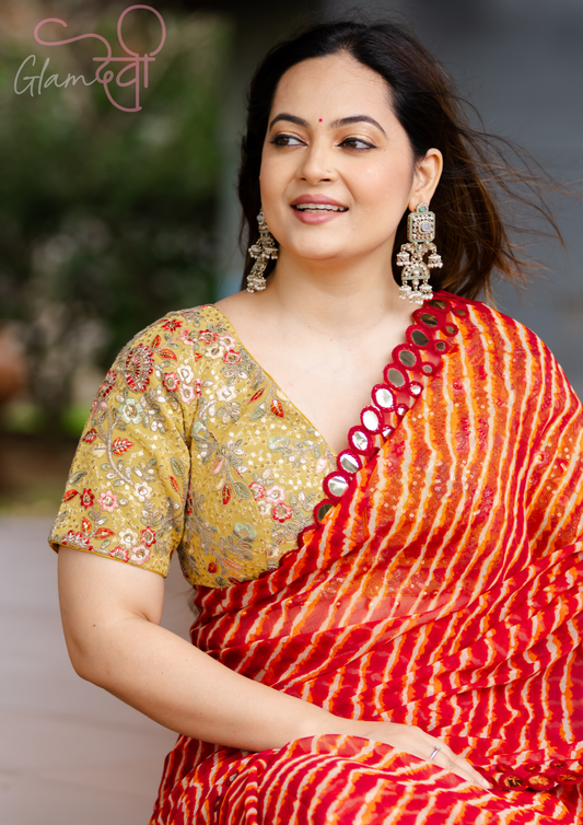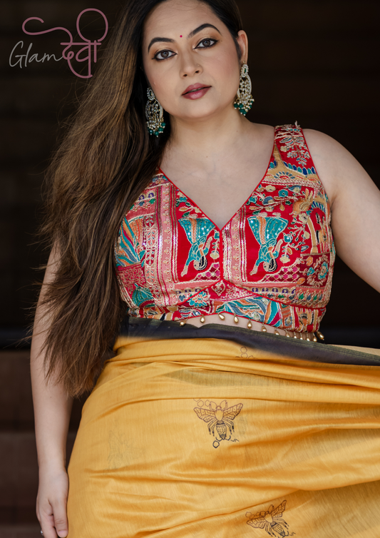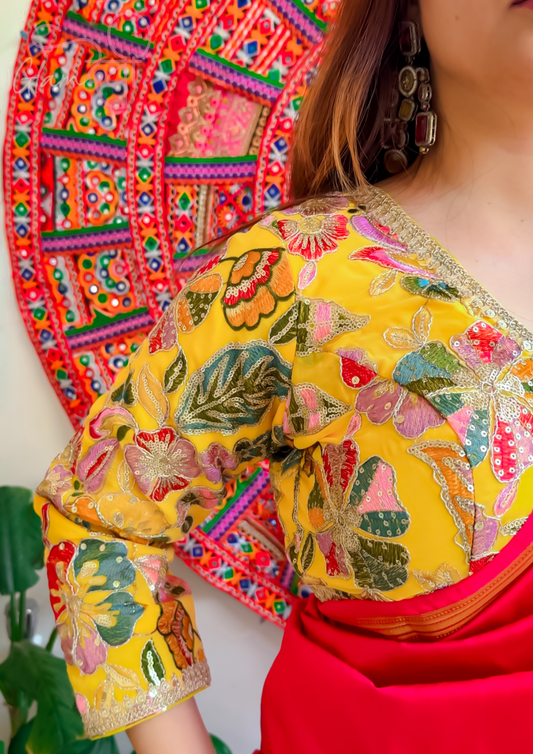 Yellow Embroidered Half Sleeve Blouse for Women – Festive & Wedding Wear | Glam Devi