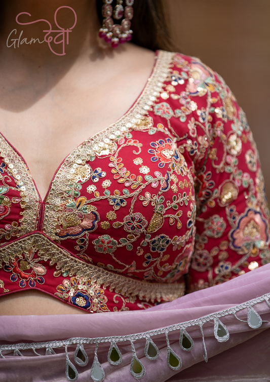 Red Half Sleeve Embroidered Blouse for Women – Festive & Wedding Wear | Glam Devi