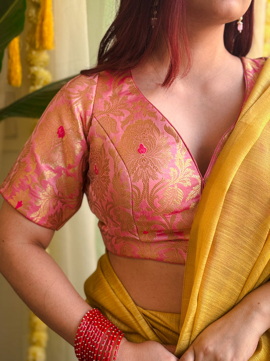 Soft Pink Brocade Blouse – Graceful and Feminine Traditional Wear