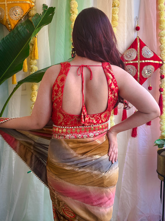 Red Brocade Blouse – Traditional and Striking Designer Piece
