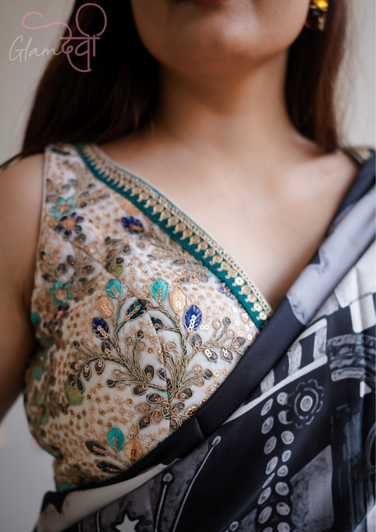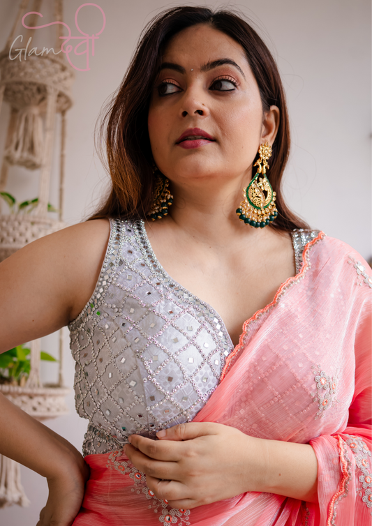 Silver Mirror Work Blouse – Perfect for Glimmering Festive Looks