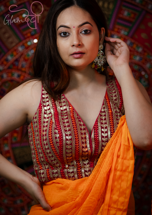 Red Sleeveless Embroidered Blouse for Women – Festive & Wedding Wear | Glam Devi